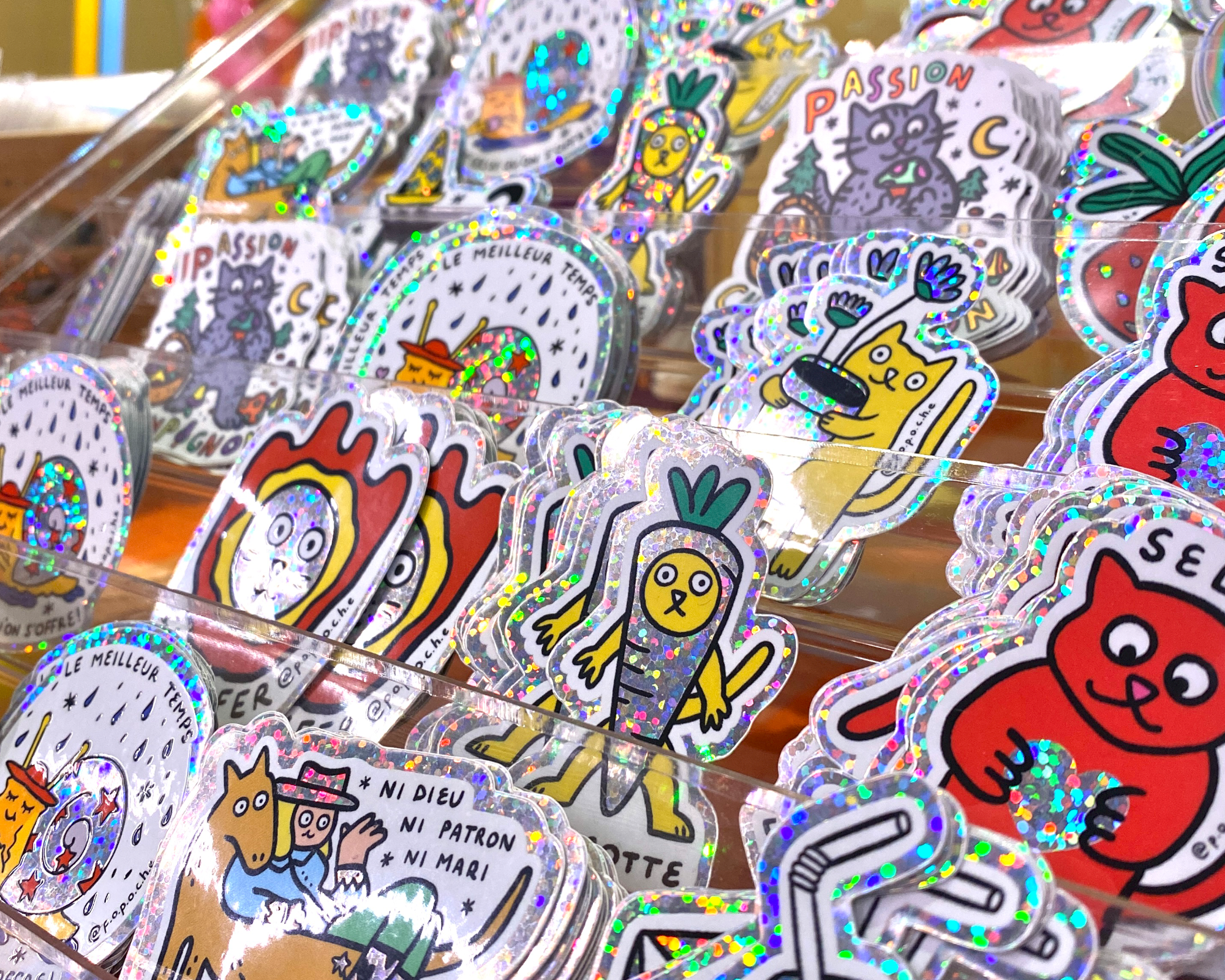Met glitterstickers krijg je echt glanzende en sprankelende ontwerpen. Met dit materiaal kun je een volledig met glitter bedekte sticker hebben of ervoor kiezen om alleen bepaalde details op je sticker glitterig te maken.