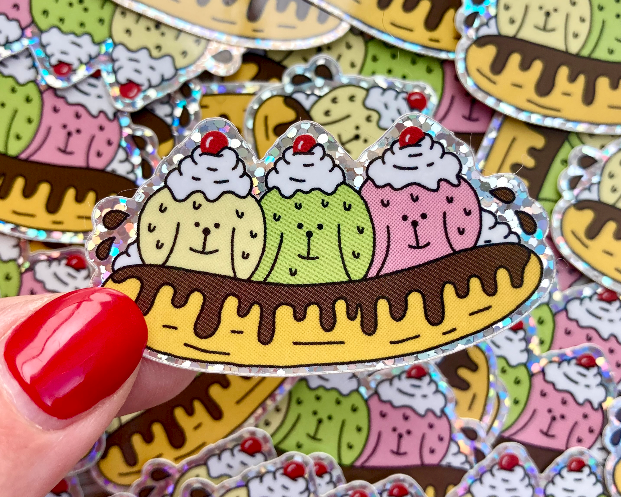 The cut line wore some of the glitter off the sticker itself, my art was just simple text glitter backing. Printed really well, but I'm not sure I'd order this material again.
